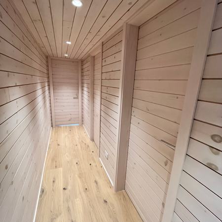 A recently installed custom solid core shiplap doors, each designed to bring a unique blend of rustic charm and warmth to the space. The shiplap design of the doors lined up perfectly with the existing shiplap in the house, creating a seamless and cohesive look. Custom door slabs were meticulously ordered to ensure a perfect fit, allowing for a flawless installation. These solid core doors not only provide excellent sound insulation and stability but also enhance the home's overall aesthetic. This project highlights the precision and attention to detail that custom carpentry demands.